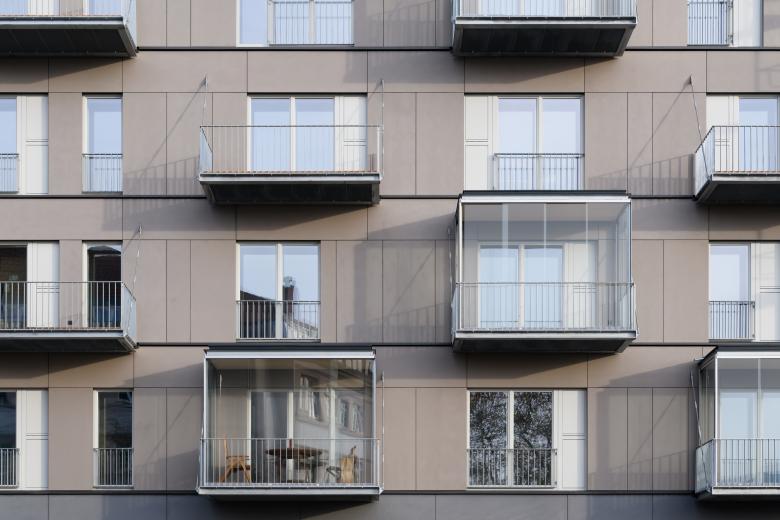 Beim Holzhaus Linse trifft Stahl auf Holz, eine ausgeklügelte Massivholzbauweise auf einen Stahlbetonkern, jahrelange Erfahrung mit dem natürlichen Rohstoff Holz auf Leidenschaft und Innovationskraft – die hybride Bauweise kombiniert die positiven Eigenschaften der eingesetzten Baustoffe im Sinne zukunftsweisenden Bauens. Mit dem Anschluss der auskragenden Stahlbalkone an eine Konstruktion aus Holz leistet Schöck Isokorb T Typ S einen entscheidenden Beitrag zum ressourcenschonenden und nachhaltigen Wohnkonzept.