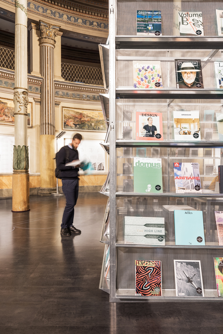 Displayed at the perimeter, publications play a crucial role in the composition, defining the elevations of PRESS BOX and creating real "paper walls".