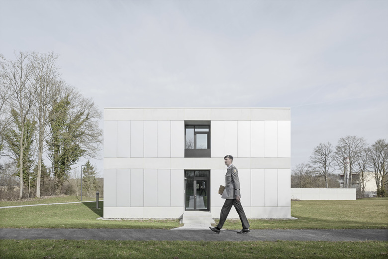 Aufgrund des Bedarfs eines Sanitätszentrums in der Liegenschaft Hermann-Köhl-Kaserne in Niederstetten wurde dieser langgestreckte, 3-geschossige Neubau für die Bundeswehr errichtet. Richtung Hang verfügt der Baukörper über zwei, dem Hang abgewandt über drei Geschosse. Die oberirdischen Abmessungen des rechteckigen Baukörpers betragen ca. 54m in Nord-Südrichtung und ca. 13m in Ost-Westrichtung. Der Neubau wird durch einen zentral gelegenen notwendigen Erschließungskern mit Treppe, WC- und Technikräumen sowie einem massiven Aufzugskern geprägt, der die Geschosse in jeweils zwei etwa gleich große Teile gliedert. Dadurch wird erreicht, dass von jeder Stelle innerhalb des Gebäudes kurze Wege zu den Erschließungselementen und den Sanitärbereichen gegeben sind.