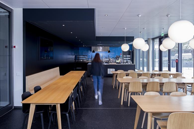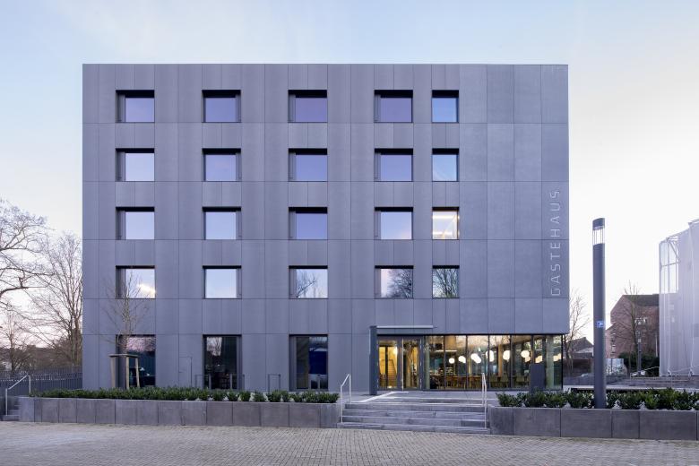 Im Gästehaus stehen 59, teils zusammenschaltbare Zimmer für mehr als 100 Personen zur Verfügung. Ein Bistro, Gemeinschaftsküchen und eine Bar, wandelbare Aufenthaltsflächen mit Spielangeboten, Fitness-, Ruheraum und weitere Lernräume schaffen unterschiedlichste Möglichkeiten zur Begegnung und Zusammenarbeit.