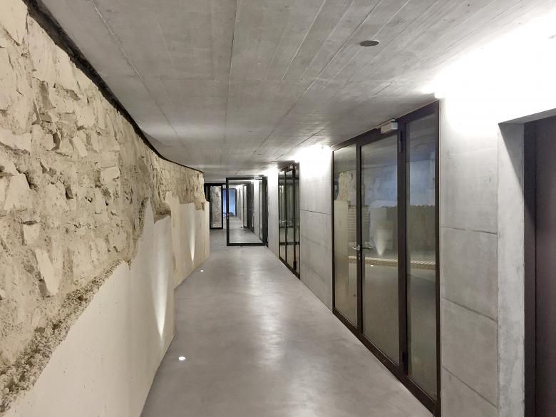 Die Rebbaugenossenschaft Osterfingen hat 2007 ein Projekt initiiert um ihre Weinproduktion überregional bekannt zumachen. Dafür wurde die 400 jährige Bergtrotte renoviert und mit einem Anbau zu einer zentralen Informationsstelle, einem ikonografisches Aushängeschild und kulinarischen Treffpunkt erweitert. Neue Event- und Gastronomieräume vermitteln den regionalen Reichtum, Gastfreundschaft und Genuss. Sie machen das Zusammenspiel von der Tradition und Innovation spürbar und verdeutlichen den nachhaltigen Umgang mit Natur und Landschaft. Eine Erweiterung historischer Bauten verlangen Zurückhaltung und klare Linien, um im Kontrast die Wirkung von Alt und Neu zu stärken. Der neue Anbau entwickelt seine architektonische Qualität durch eigene Zurücknahme und Inszenierung einer rudimentären Materialwirkung als Allegorie für Natur und Landschaft. Um den Bestand als Solitär zu erhalten, wird er nordseitig in den Hang eingebettet. Ein erratischer Block als rudimentärer Unterstand für den alten Trottenbaum spannt zwischen sich und dem Altbau einen neuen, stimmungsgeladenen Aussenraum auf. Im Inneren akzentuieren verdeckte Kunstlichtbänder eine langgezogene Linienführung während Tageslicht über Oberlichter effektvoll in die Räume fällt. Die Genussregion erhält ein modernes Gesicht und ein wirtschaftlich nutzbares Baudenkmal. Ausstellung und Gastronomie verankern sich im Zusammenspiel mit der Architektur im Gedächtnis und lassen eine markante Adresse für regionale Angebote entstehen.