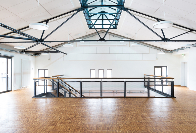 On the upper floor, the architects uncovered the historic steel framework of the roof truss with a span of 13.5 meters. The appearing saddle skylights are used for room lighting with daylight.
