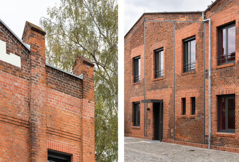 The historic patina of the façade with its different time layers of different bricks and discoloration has been preserved. Damaged bricks and subsequently inserted bricks that did not match the original color were replaced.