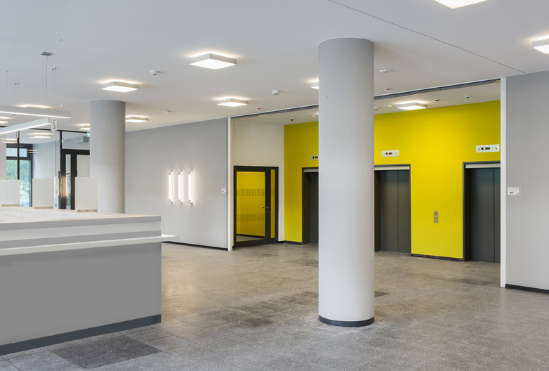 The Bornemann building is an outstanding example of modern post-war architecture. Together with the Town Hall Wedding, the whole complex is under monument protection since 1995. The building has been completely modernized and extended for the accommodation of the JobCenter Mitte. In particular, the refurbishment backlog created over the decades were solved, improvements to the fire prevention were made and the building envelope were strengthened more energy-efficient.