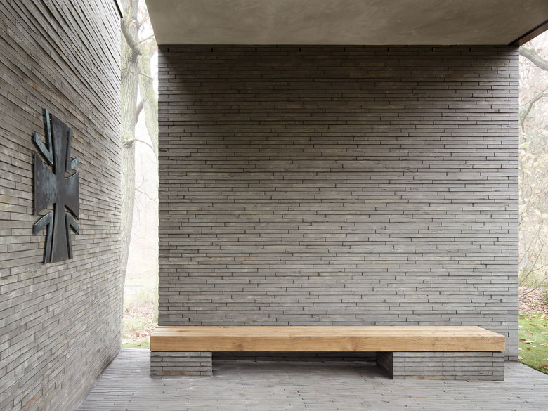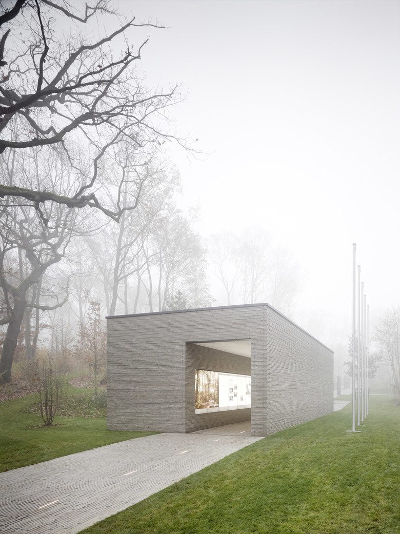 Rüthnick Architekten developed the architecture and landscape concept for the Memorial. The central element is the "way of memory". This trail leads visitors from the access through the reception building to the spatial completion of the Memorial, the "place of tranquility". Right and left of the route, seven honor groves from the former overseas operation are embedded in glades.