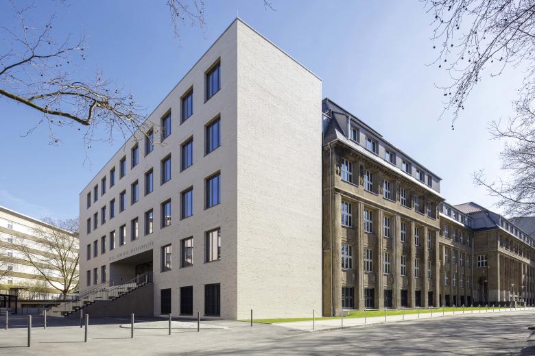 As part of a Europe-wide VOF tender in 2013, SSP was awarded the contract by the City of Dortmund for the overall planning of the renovation and construction of extensions and new buildings for the Fritz-Henßler-Berufskolleg. The task is to create a fixed room program of approx. 9,600 m² of usable space, taking into account the building fabric worthy of preservation, both in the existing building and through extensions or new buildings. At its core, the design concept envisages the addition of two building blocks, which naturally and consistently complement the street-side monument and the courtyard monument to form a two-winged complex with central access corridors. Despite the almost equal proportion of usable space in the renovated existing building and in the extension or new building, the existing building determines the building configuration. The existing building configuration thus remains legible on all sides both inside and outside the building and the scale is retained. Due to this space-efficient addition of the five-storey building blocks, the building volume can be reduced to a minimum of new construction area (GFA), which simultaneously strengthens the existing building and meets the existing budget requirements. In June 2015, a solo exhibition entitled "Baukunst für Bildung - Weiterbauen am Fritz-Henßler-Berufskolleg" was dedicated to the project "Renovation and extension of the Fritz-Henßler Berufskolleg" at the old Museum am Ostwall Dortmund.