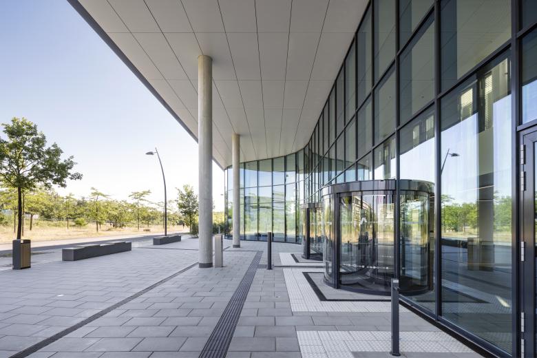 The modern project house is characterized by its sustainable construction and energy efficiency, which complies with the Gold Standard of the German Sustainable Building Council (DGNB). Most of the building's energy consumption is covered by 30 geothermal probes and a 96-kW photovoltaic system that covers 470 m² of the roof. The two inner courtyards of the new building were extensively greened. The planned primary energy requirement is therefore 59 kWh per year and m². Particular emphasis was placed on a resource-conserving supply chain when selecting the building materials.