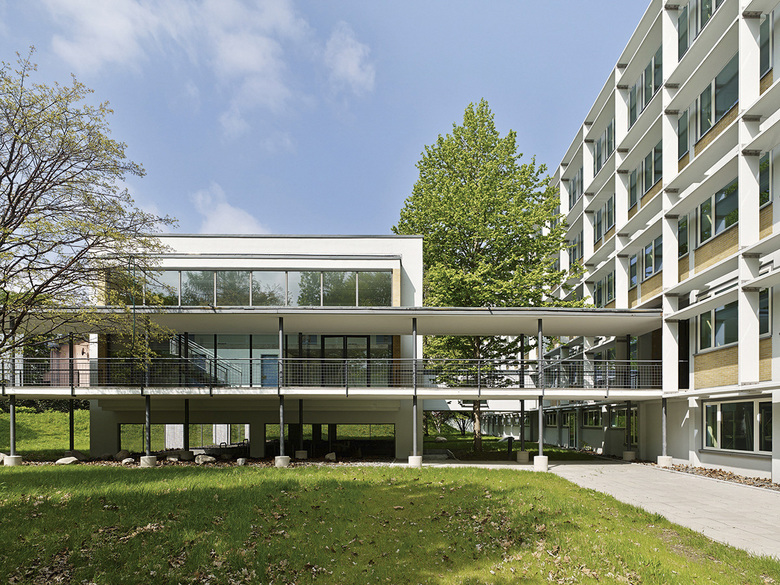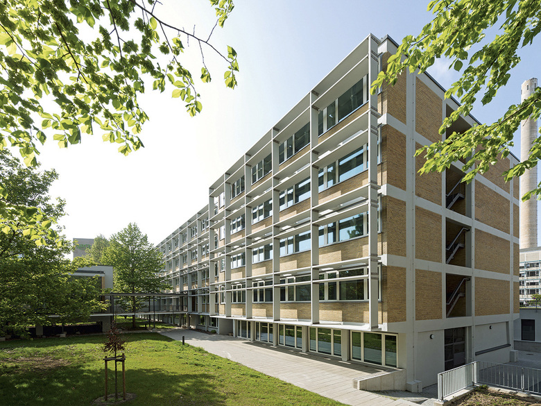 The University building with the Institute for Pharmacology and Food Chemistry of the Goethe-University Frankfurt am Main on the Bockenheim campus was planned 1954-1957 by Ferdinand Kramer. It is one of 23 buildings, which he designed as Planning Director for the Johann-Wolfgang-Goethe-University within the period of 1952-1964. Within the urban framework for the district Bockenheim, the building forms the southern terminus of the campus.