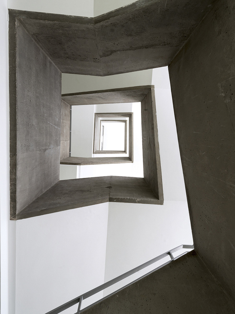 The new floor plan respects the historical model. The new fitting of the building gently combines the needs of the user as well as the original design by Ferdinand Kramer. The basic idea of the new design was not only to preserve, but to continue the building use in Kramer’s sense. His widow, Lore Kramer confirmed the fact that this was achieved at the new opening of the building. Open neon tubes in the hallways remind on the one hand to the original equipment of the ´50s, and on the other hand demonstrate the possibilities of the latest technology through installation of neon tubes as a continuous band.