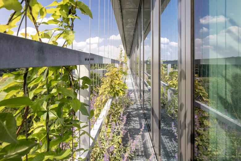 The building follows the method of the SSP planning label "GreytoGreen" and impressively implements the sustainability strategies of efficiency (energy and resources), consistency (cradle to cradle) and sufficiency (avoidance of unnecessary building materials and elements).