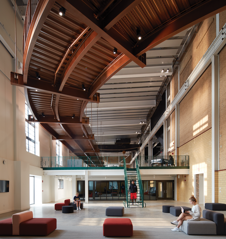 Transforming a former power plant into a student union centered on recreation and wellness, the Powerhouse project replaces an old model of energy with a new one to enhance student experience and revitalize the local riverfront. Located along the Rock River, adjacent to the Beloit College campus and near downtown Beloit, the project combines an assemblage of historic buildings that made up the Blackhawk Generating Station (constructed between 1908–1947) along with a new field house addition. The design retains architectural features and industrial equipment from the original structures while incorporating new, sustainable practices and lively gathering spaces that encourage students to mix with each other and the larger Beloit community.