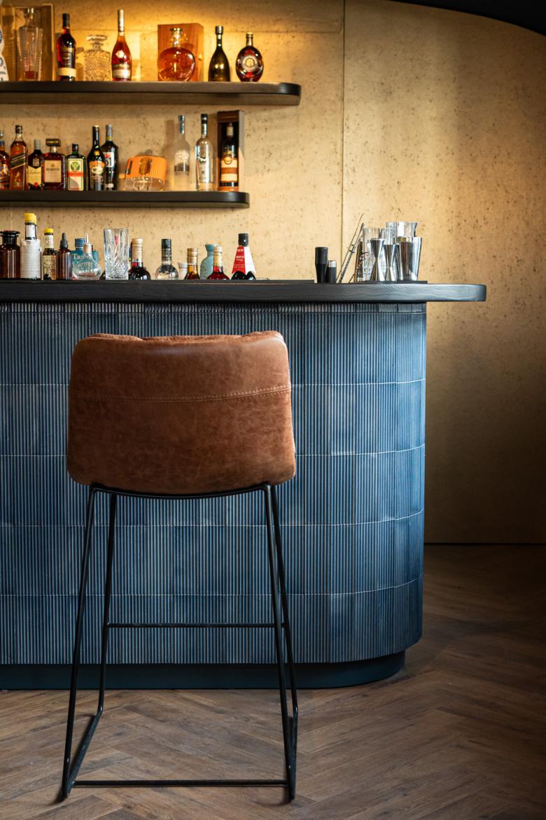 Die Formensprache ist bewusst weich und organisch gewählt, während eine reduzierte Materialpalette aus Holz, Textilien und warmem Licht eine einladende Atmosphäre erzeugt. Zonierungen aus transluzenten Elementen schaffen intime Räume, ohne die Offenheit des Gesamtkonzepts zu verlieren.