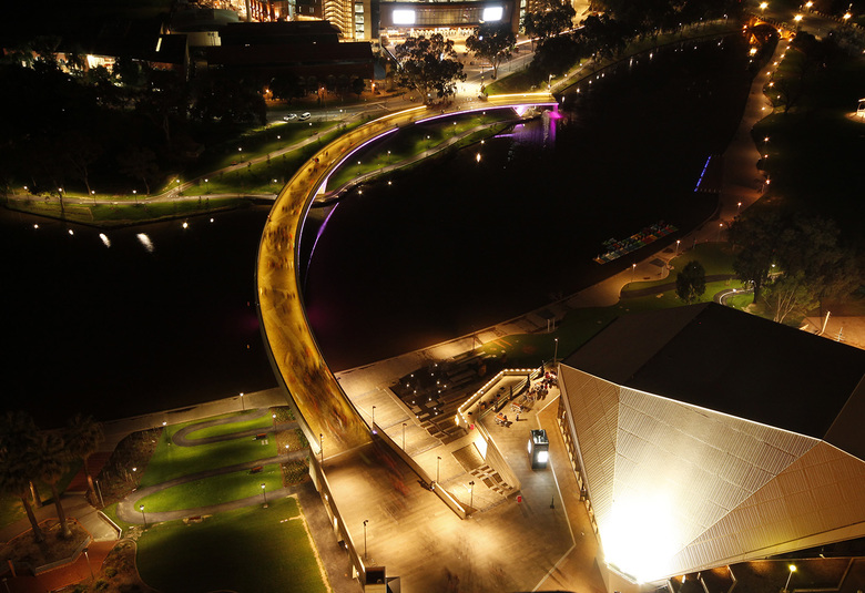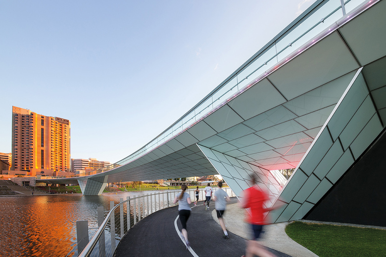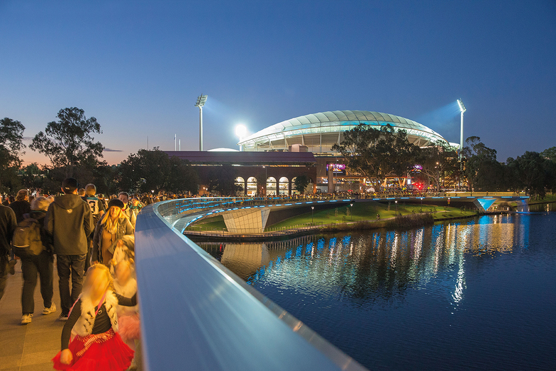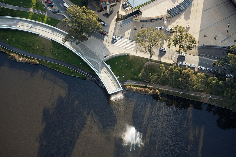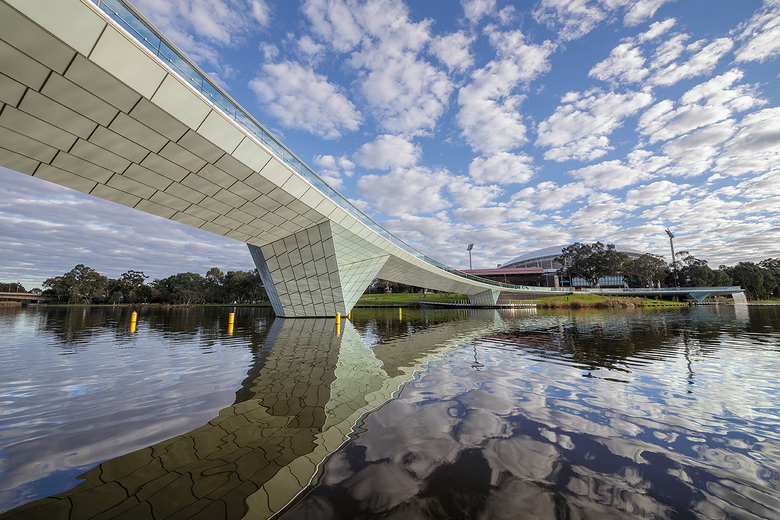 The Riverbank Pedestrian Bridge provides a vital connection between the city’s highly visited Adelaide Festival Centre, Adelaide Railway Station and the recently redeveloped Adelaide Oval. The 255 meter long bridge was constructed by McConnell Dowell and arcs over the Torrens, connecting two key destination points on the north and south banks. The upgraded connection points provide activated destinations at each end of the bridge, with interactive elements including lighing and water features.