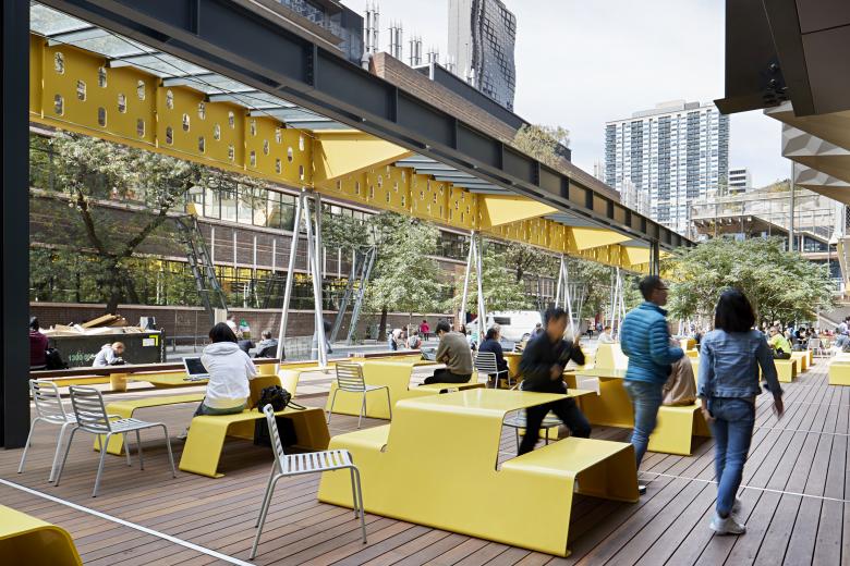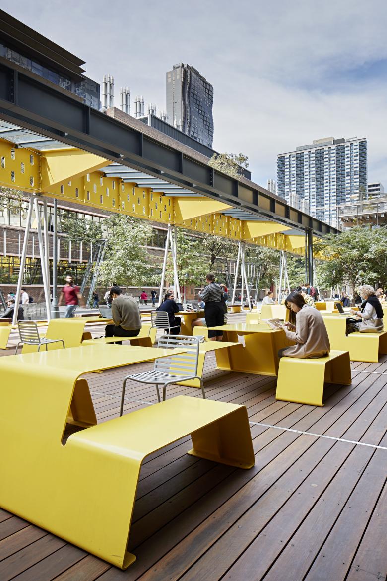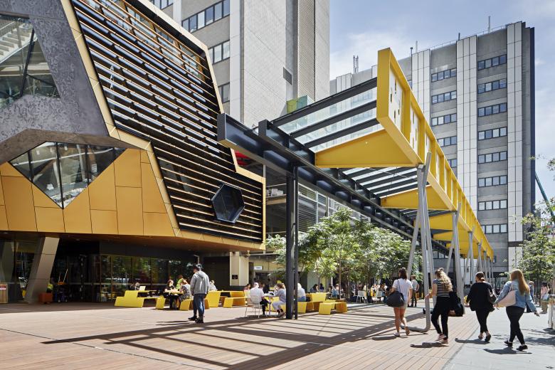 new student spaces along the Bowen Street Terrace. The design looks at consolidating this precinct as the student heart of the campus with a new timber