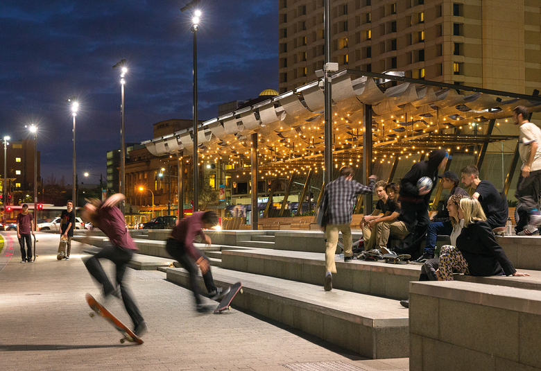 Stage 1 commences the implementation of a revitalized Victoria Square/ Tarndanyangga and is based on the first fully endorsed Masterplan for the Square in 40 years. This regeneration creates a people focused heart for the city which facilitates everyday community expression and supports ever changing events and festivities.