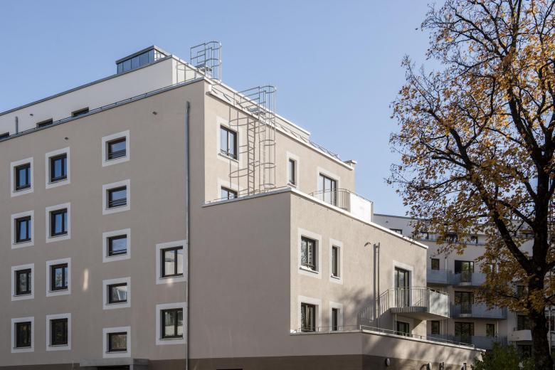 Das neue Wohngebäude kombiniert einen Wohnungsmix an Wohnungen nach dem Modell „München Modell Miete“ (MMM) und dem Modell der „Einkommensorientierten Forderung“ (EOF). Das Wohnangebot wird ergänzt durch einen Gemeinschaftsraum, der sich zentral in der Gebäudeecke positioniert.