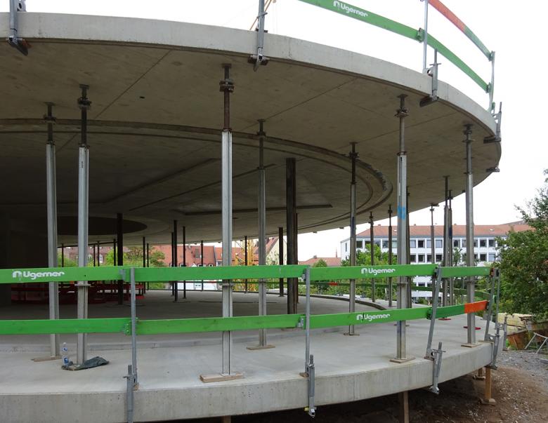 Das neue Gebäude der Umweltstation in Würzburg beherbergt die Bildungs- und Beratungsstelle zum Thema Umwelt, Klima und Nachhaltigkeit der Stadt Würzburg. Der Neubau ist nicht nur architektonisch ein herausragendes Gebäude, das sich optimal in den Landschaftsraum auf der historischen Bastion einfügt. Innovation und Nachhaltigkeit prägen das Gebäude und durchzogen den gesamten, vom Bayerischen Zentrum für Angewandte Energieforschung (ZAE Bayern) und der Deutschen Bundesstiftung Umwelt (DBU) begleiteten Planungsprozess. Bereits in der Wettbewerbsphase war eine nachhaltige Bauweise ausgeschrieben. Die Stahlbetonkonstruktionen, einschließlich der Sichtbetonwände und -decken bestehen aus Beton mit rezyklierten Zuschlägen (Recycling-Beton) – ein Novum für öffentliche Gebäude in Bayern, weshalb das Projekt wissenschaftlich als Pilotprojekt von der Brandenburgischen Technischen Universität Cottbus-Senftenberg betreut wurde. Das rezyklierte Betonmaterial stammt von einer nahegelegenen, ehemaligen Autobahnbrücke.