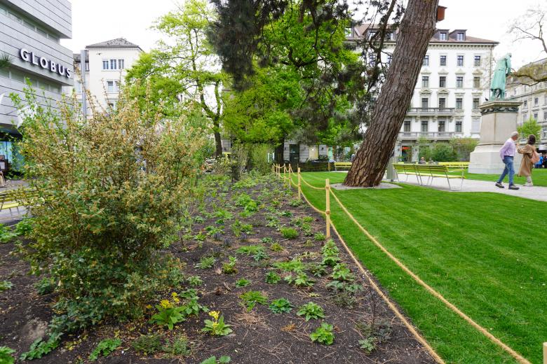 Das grosszügige Baumdach, welches den Freiraum bis heute prägt, bleibt