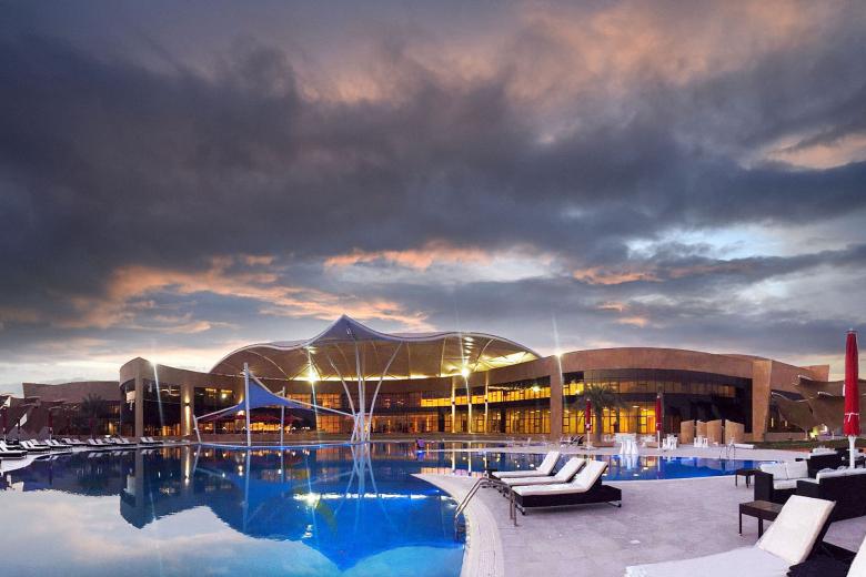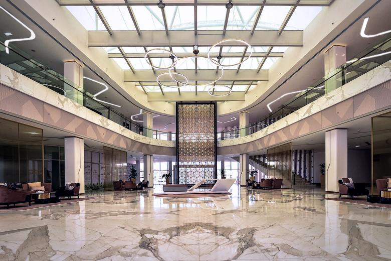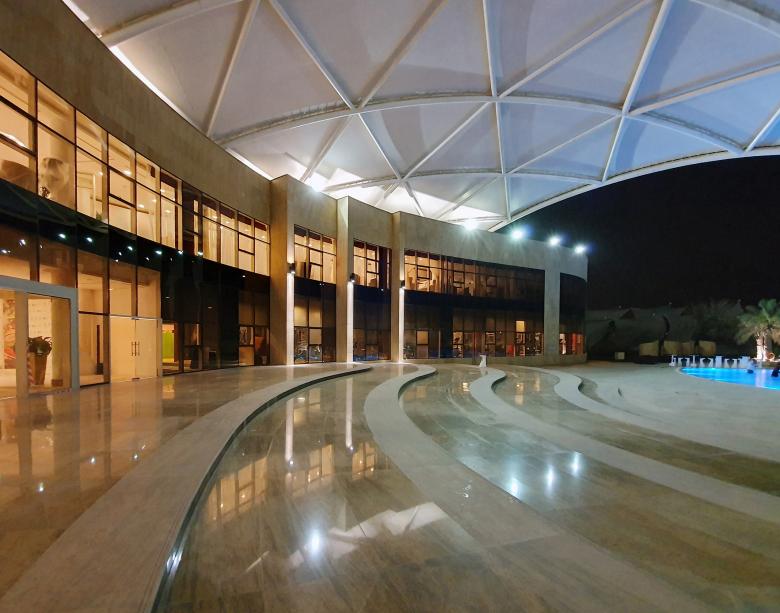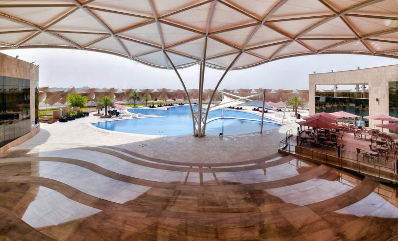 The entire complex is immersed in a park of 180,000 sqm overlooking the sea: in front of the club beach a special lagoon has been created, between 120 and 150 meters wide, separated from the open sea with a series of strips of land and breakwaters : in the lagoon women are free to swim and sunbathe without the Abaya, the characteristic covering dress of the Persian Gulf region, far from any prying eyes and curious boats. The Ladies Club represents the best of made in Italy thanks to the prestigious Italian companies that have contributed to its realization with the excellence of their products. Sanitary ware and finishes were entrusted to: Nobili for taps, Mirage for the tiles, Azzurra Ceramiche's sanitary ware. The lights bear the signature of Guzzini, Targetti and Lamp. The furnishings were curated by Meritalia, DV home collection, MB chairs.