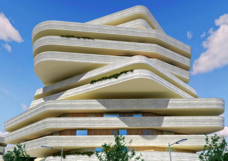 The design of the levels is characterized by free forms based on organic matrix and inspired by architecture of Frank Lloyd Wright. This is developed with overlays staggered plans horizontals to model large terraces and balconies.