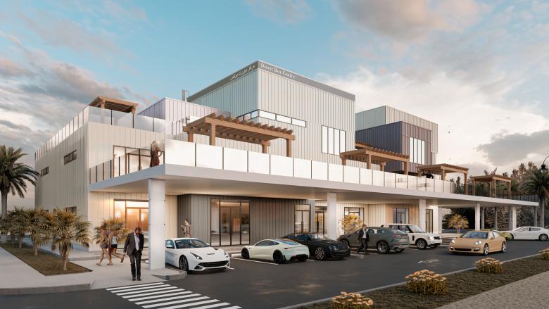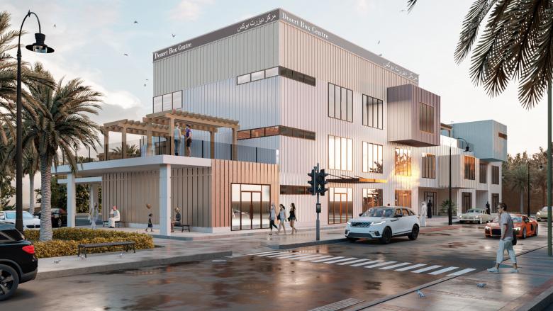 The Desert Box Center is envisaged as the possible business and retail catalyst for a small city nestled in the middle of the desert.