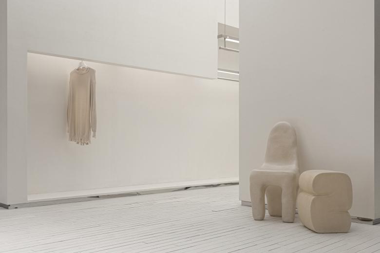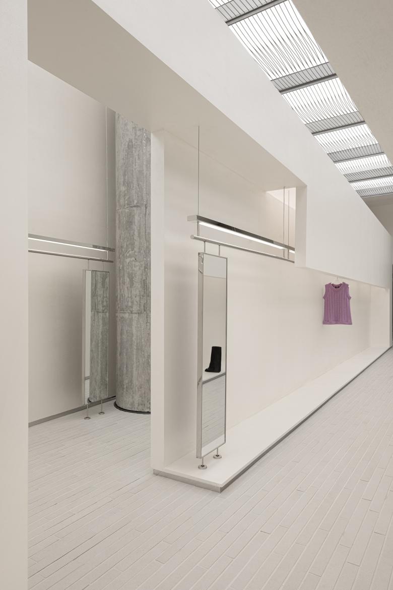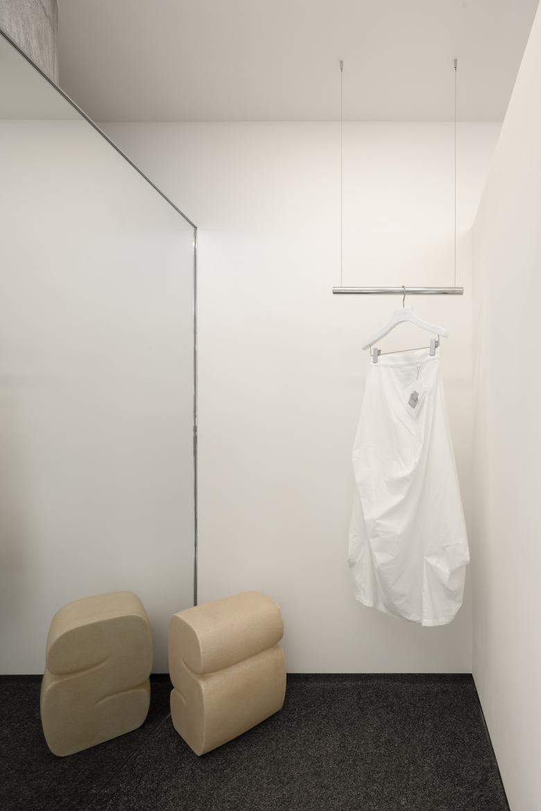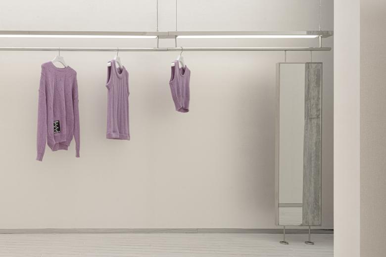 In this space, everything is expected to be 'lightweight', so that customers can only feel the space, garments and themselves when moving in it.