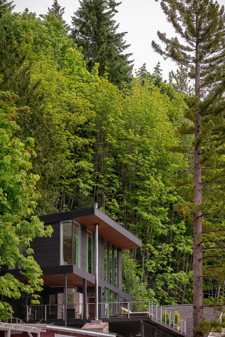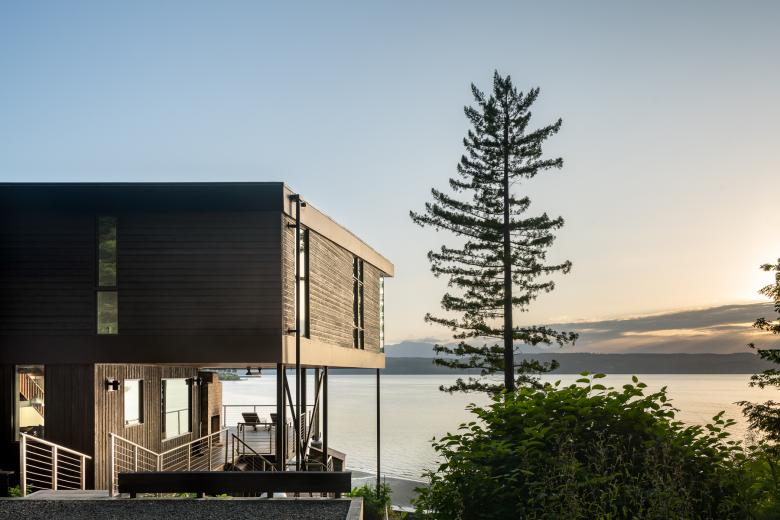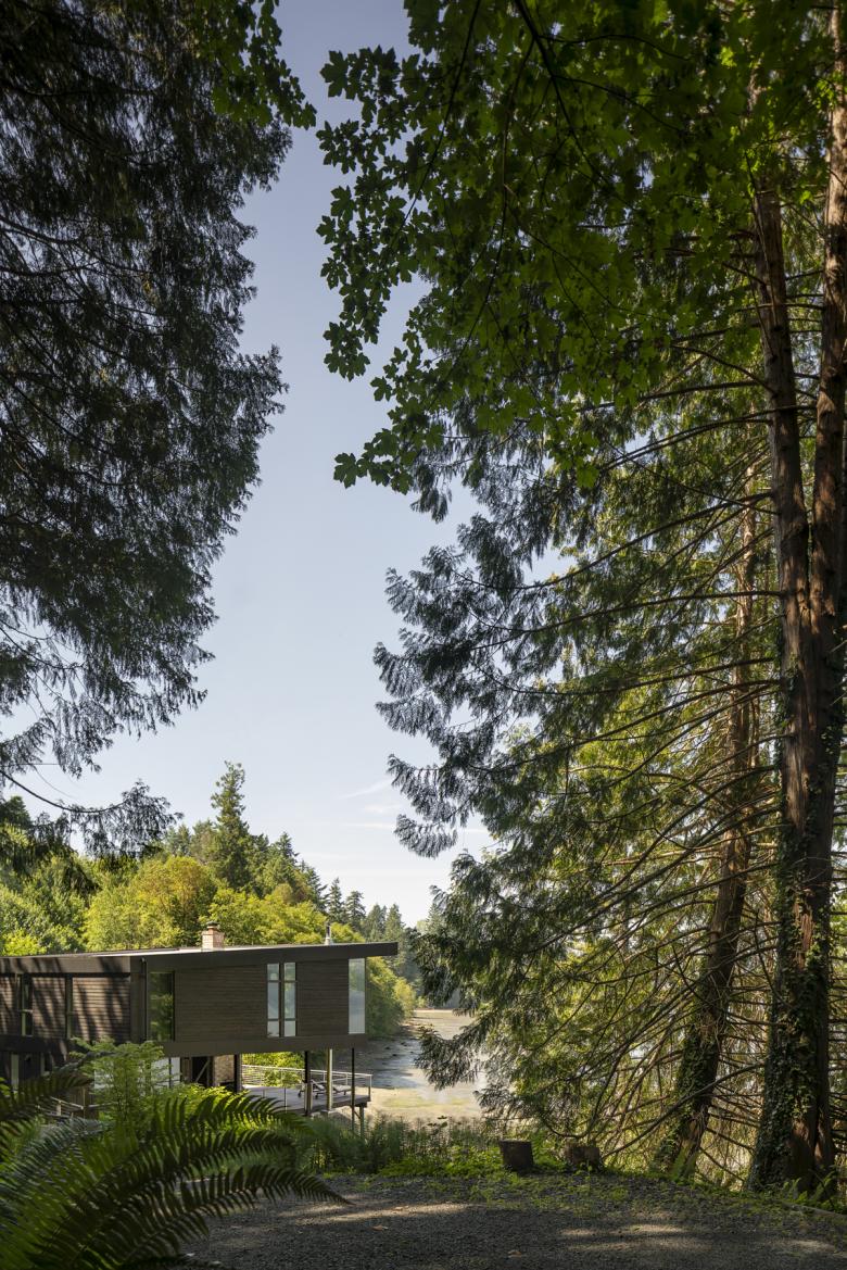 The house represents a regional northwest problem of building on fragile shoreline. “Due to the complex constraints of the shoreline exemption, we kept to the existing footprint, expanding the house only from the existing structure,” says Matt Wittman, Principal at Wittman Estes. “As a result, all new square footage is supported by compact pier foundations on pin piles.”
