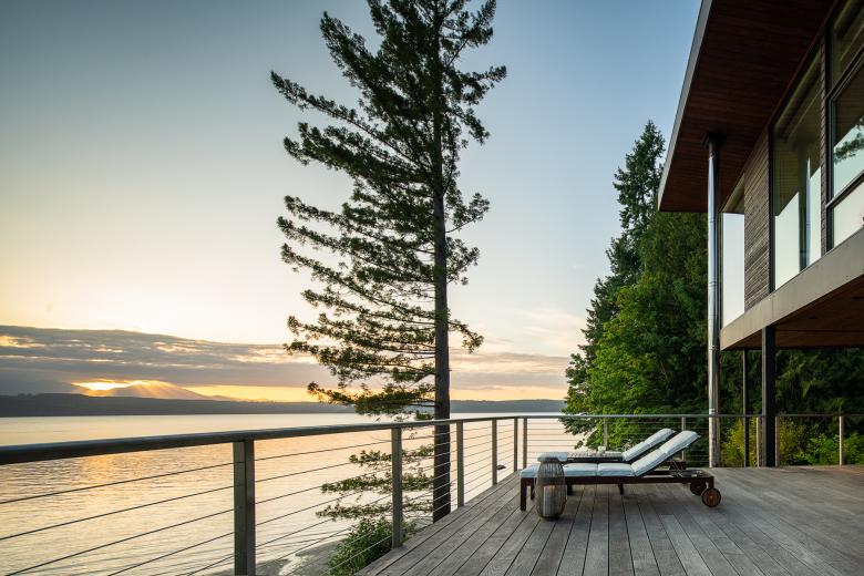 Native plantings and drought tolerant species were brought in to mitigate site disturbance and increase the ecological function of the site. The architects wanted the site preservation to extend beyond the footprint and into the materials of the building itself. Local cedar, quintessential to a northwest house, wears naturally with the wet and dry seasons. Stainless steel and concrete provide a maritime accent to the wood materials. Through the use of naturally weathering materials, the life of the building was extended while allowing ease of maintenance for the users.