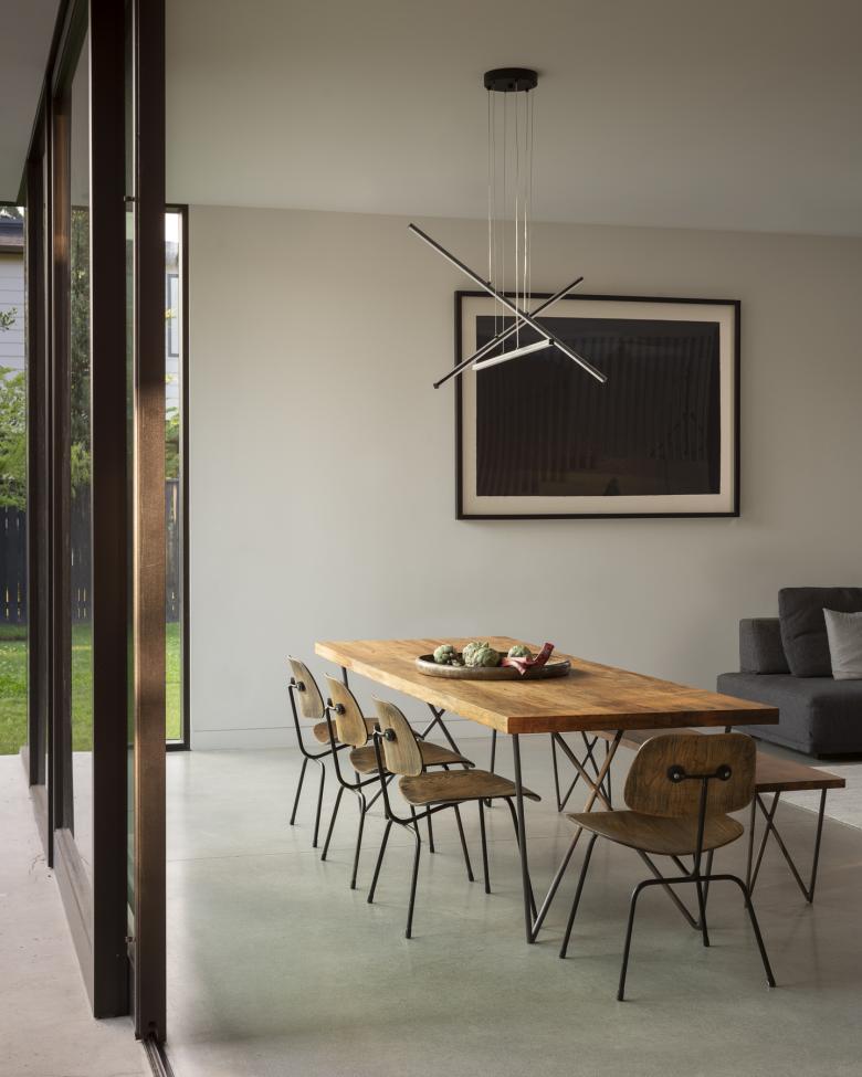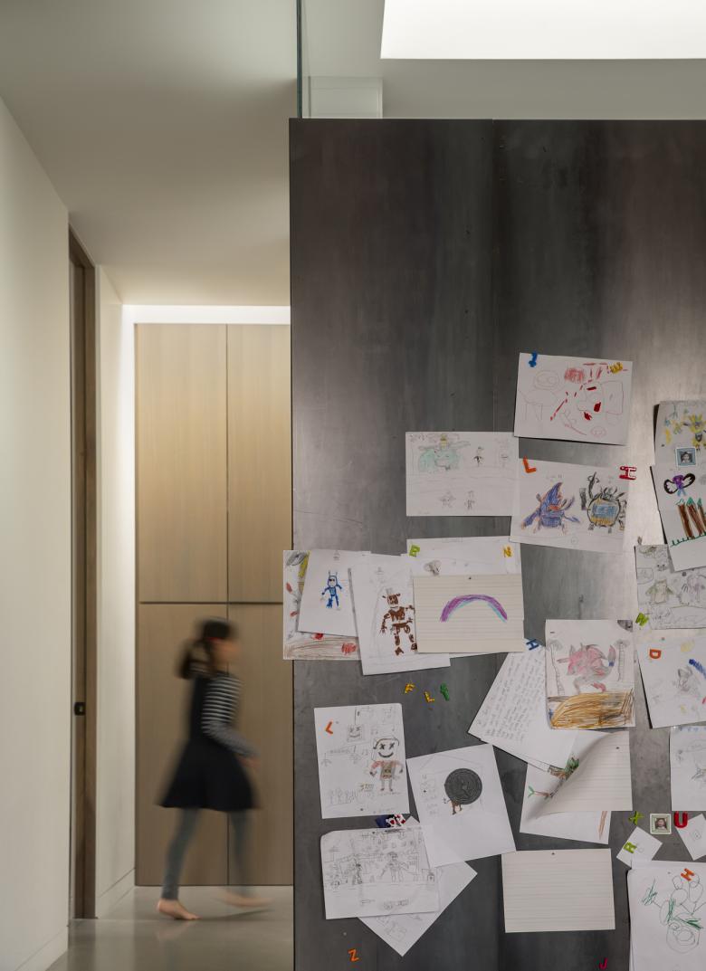 Home to an active family with three young children, the architects addressed the challenges of future density—the danger of increasing traffic with playful children, noise pollution, and decreased amount of natural vegetation—by having the house look inward instead of outward. The house draws upon the traditions of “Chinese courtyard and garden design, along with the ideas underlying Chinese landscape painting techniques, to rethink the traditional single-family home” says architect Matt Wittman.
