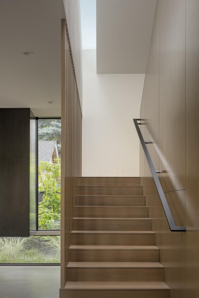 What happens to the suburban single-family home as cities become dense and privacy becomes limited? It must look inward. Through a series of thresholds from opaque to transparent, Yo-Ju Courtyard House, which means “secluded living” in Mandarin Chinese, embraces the future of suburban density by establishing a private experience despite being adjacent to a busy arterial street in the Clyde Hill neighborhood of Bellevue.