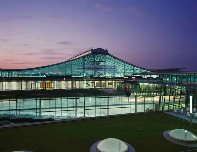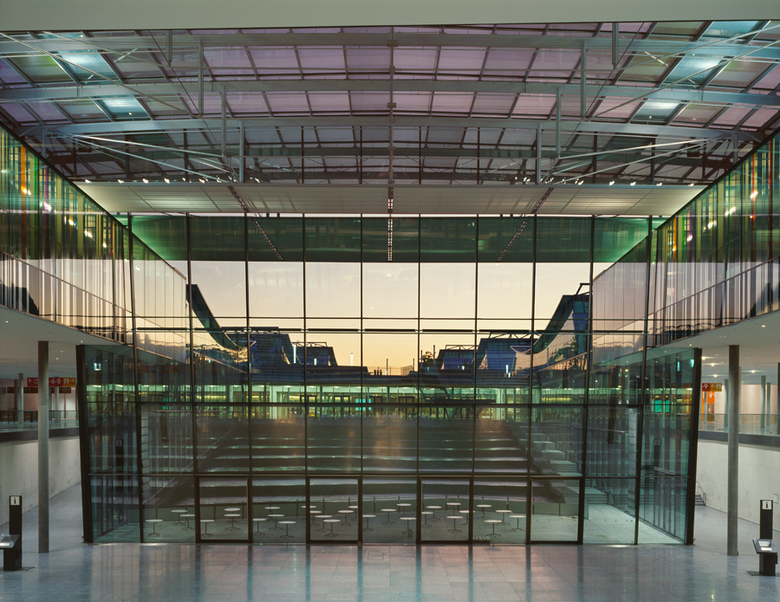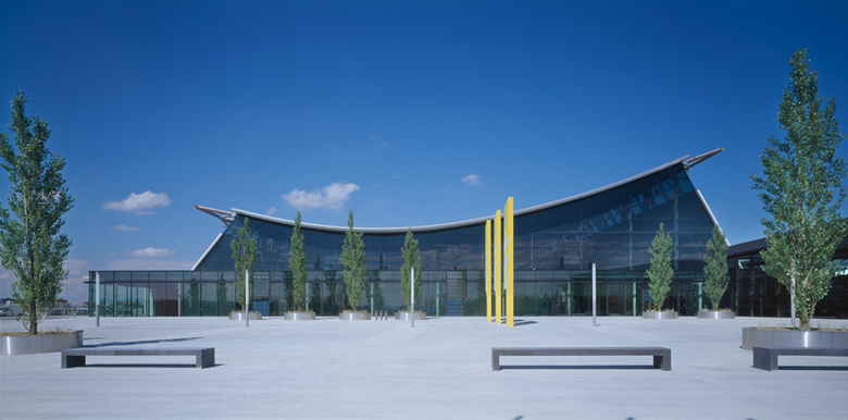 The New Exhibition Centre venue is characterized by minimal use of the landscape, short paths and exhibition halls with distinctive curved roofs. The Messepark’s wedge shape makes it easier to get one’s bearings. Changes in level create ideal access for loading and unloading. The congress centre and the multifunction hall - with an outline like a circus big top – are visually distinct from the exhibition halls. The planted multi-storey car park rises above the autobahn and the planned ICE line and acts as a kind of “super sign” for the venue. The Neue Messe at Stuttgart airport responds to the topography of its surroundings, and makes sensitive use of ecological resources. A solar power array, 40,000 metres in size, is integrated into the roof. The structure’s free, curved lines are underpinned by a clear, rational formal vocabulary. The whole complex looks light and expansive.