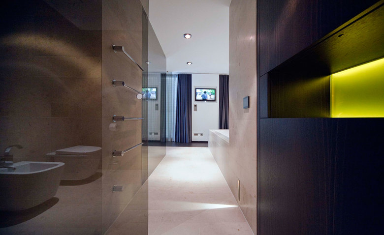 Sämtliche Einbaumöbel wurden von a+p entwickelt und auch beim Kauf von Textilien, Teppichen und allen losen Möbeln war das Architekturbüro beratend tätig. So konnten Materialien, Farben und Strukturen bis ins letzte Detail aufeinander abgestimmt werden.