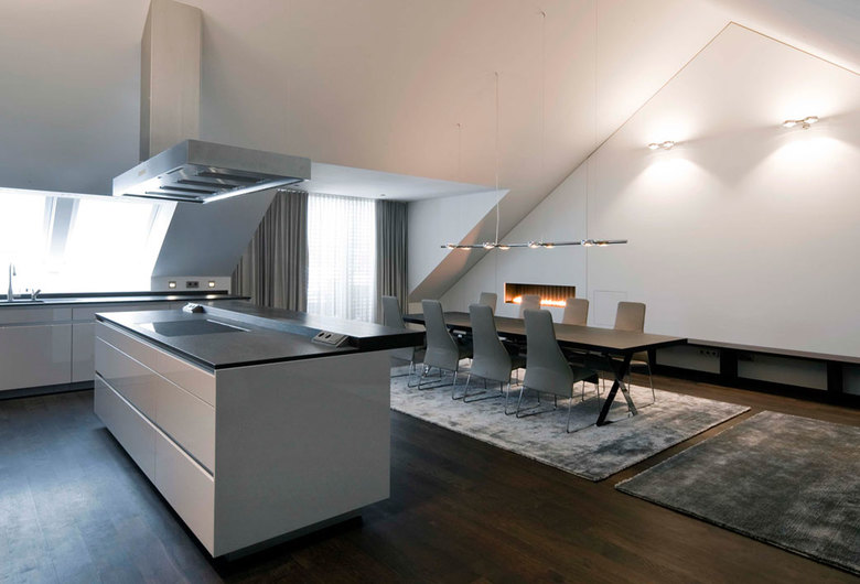 Auf zwei Ebenen entstand ein komfortabler „Maßanzug" mit Dachterrassen und Blick über die Dächer von München, der ganz auf die Wohnbedürfnisse und Wünsche der Bauherren - einem jungen Paar in den 30ern - zugeschnitten ist.