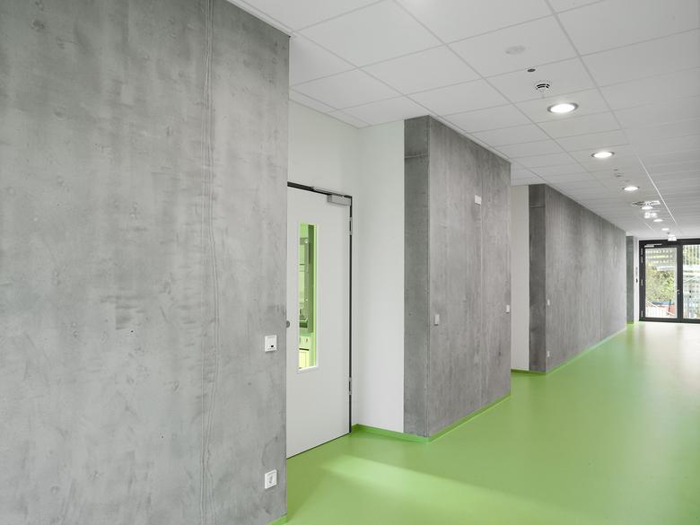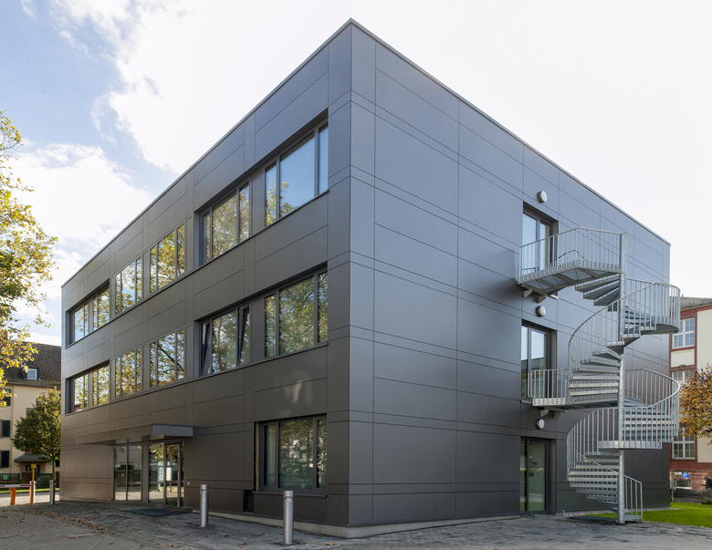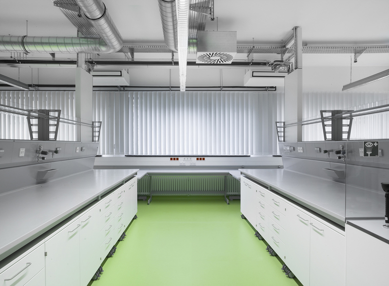 Der Neubau von Laboren im Campusbereich Gutfleischstraße entstand im Kontext der Ausweitung von Studienkapazitäten für den Fachbereich 04 - KMUB der Technischen Hochschule Mittelhessen. Im dreigeschossigen Gebäude mit den Abmessungen 22,5 x 17,1 m und einer Höhe von 12 m stehen Lehrenden und Studenten Laborräume, Büros sowie andienende Flächen zur Verfügung. Das konstruktive Rastermaß von 3,6 m und die Geschosshöhe von 3,75 m sind aus der Labornutzung abgeleitet. Zur Vermeidung von Erschütterungen bei häufiger Nutzung von Mikroskopen wurde das Tragwerk als massive Fertigteile-Stahlbetonkonstruktion konzipiert.