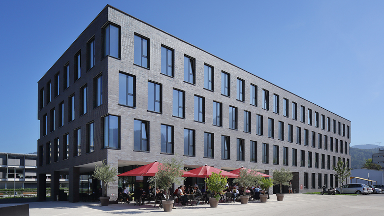Nach dem großen Erfolg des ersten Campusgebäudes 2009 wurde das Gelände der ehemaligen Postgaragen bereits 3 Jahre später um eine neues Bürohaus erweitert. Direkt an der Dornbirner Ache gelegen begrenzt das neue Gebäude das Areal im Norden. Auch mit 4 Geschoßen bleibt es deutlich niederiger als der 6 geschoßige Kopfbau. Dennoch nimmt er in der Gestaltung einige Elemente wie die Klinkerfassade oder die raumhohen Fensteröffnungen auf. Die Grundform des Baus ist rechteckig, die Mieteinheiten gerastert und flexibel einteilbar. Bereits in der Masterplanung war ein gemeinsamer öffentlicher Platz vorgesehen, der auch Möglichkeiten für verschiedene Events oder Veranstaltungen bietet. Diese Begegnungszone wurde mit einem sandfarbenen, colorierten Asphalt umgesetzt. Das im Erdgeschoß angesiedelte Restaurant erhielt südseitig eine großzügige Terrasse.