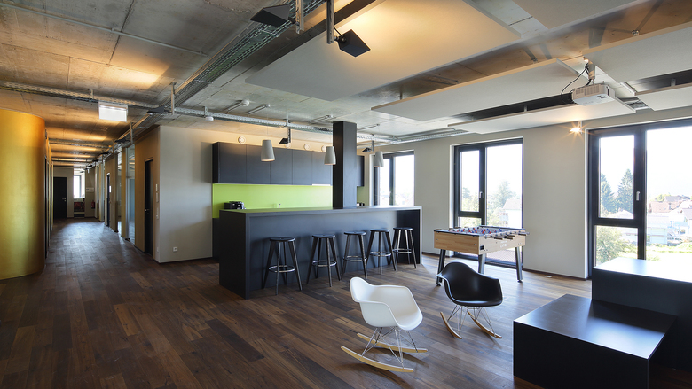 Um dem Wunsch nach sehr kleinen, flexiblen Mieteinheiten Rechnung zu tragen, wurde das gesamte oberste Geschoß als „coworking space“ ausgebaut. Hier können kleinste fixe Büroeinheiten sowie auch tageweise Arbeitsplätze gemietet werden. Die gut ausgebaute Infrastruktur mit WLAN, Küche, Lounge und Besprechungsräume wird gemeinsam verwendet.