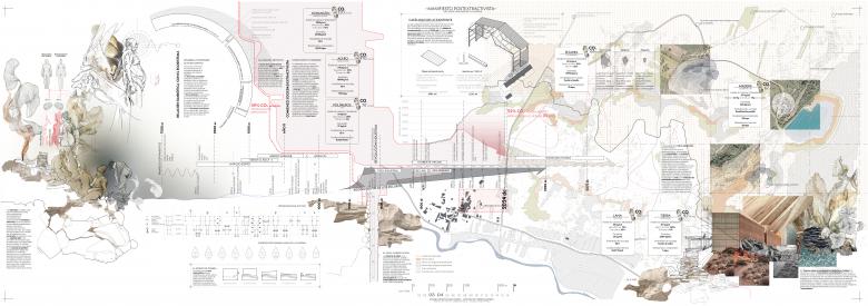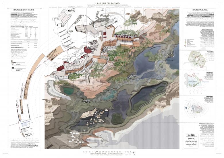 The current consumption model is outdated, and architecture reflects this crisis. This project, driven by degrowth principles, reimagines construction practices to foster healthier, regenerative spaces. Through the case study of a thermal leisure center in an abandoned slate quarry in Sierra de la Culebra, a prototype of degrowth strategy for architecture is developed. After a devastating wildfire in 2022 ravaged the region’s biodiversity, deep-rooted issues were laid bare: depopulation, climate change, and an outdated economic model driven by uncontrolled resource extraction.