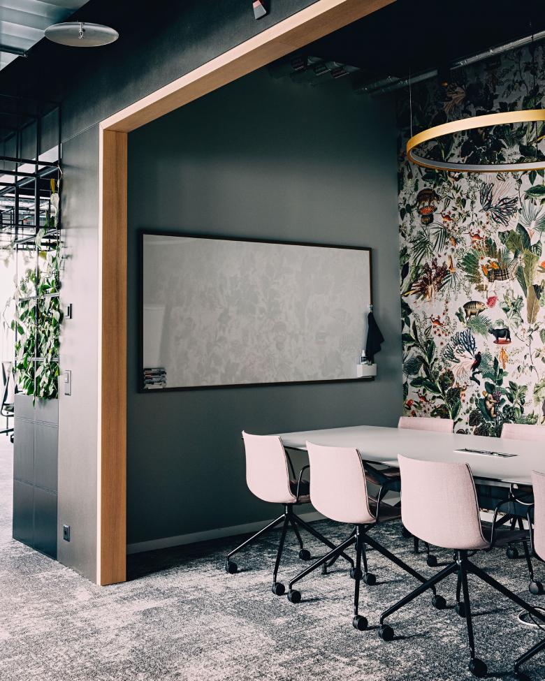 Es herrscht eine kreative Atmosphäre, welche zum Austauschen anregt und gleichzeitig den Raum für Individualität schafft. Mit den unterschiedlichen Wandbelägen, Tapeten, der Raumbegrünung und Möblierung erhält jeder Raum und Bereich einen ganz eigenen Charakter. Die farbenfrohe Welt von isolutions zieht sich durch alle Bereiche hindurch und definiert das Gesamtkonzept der Innenarchitektur.