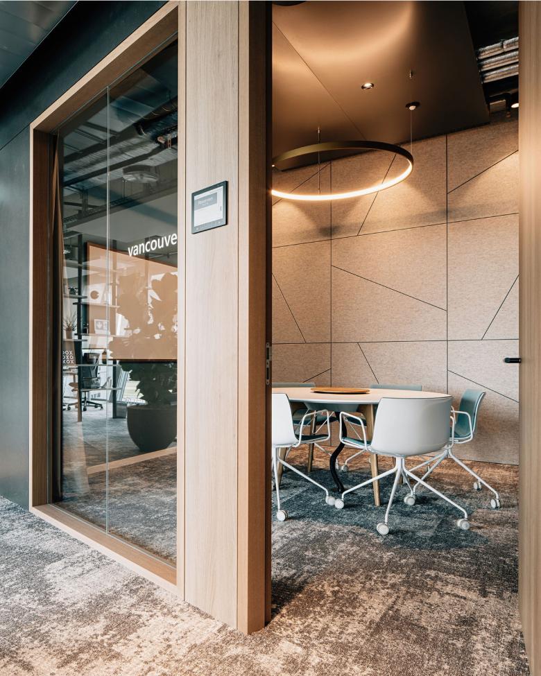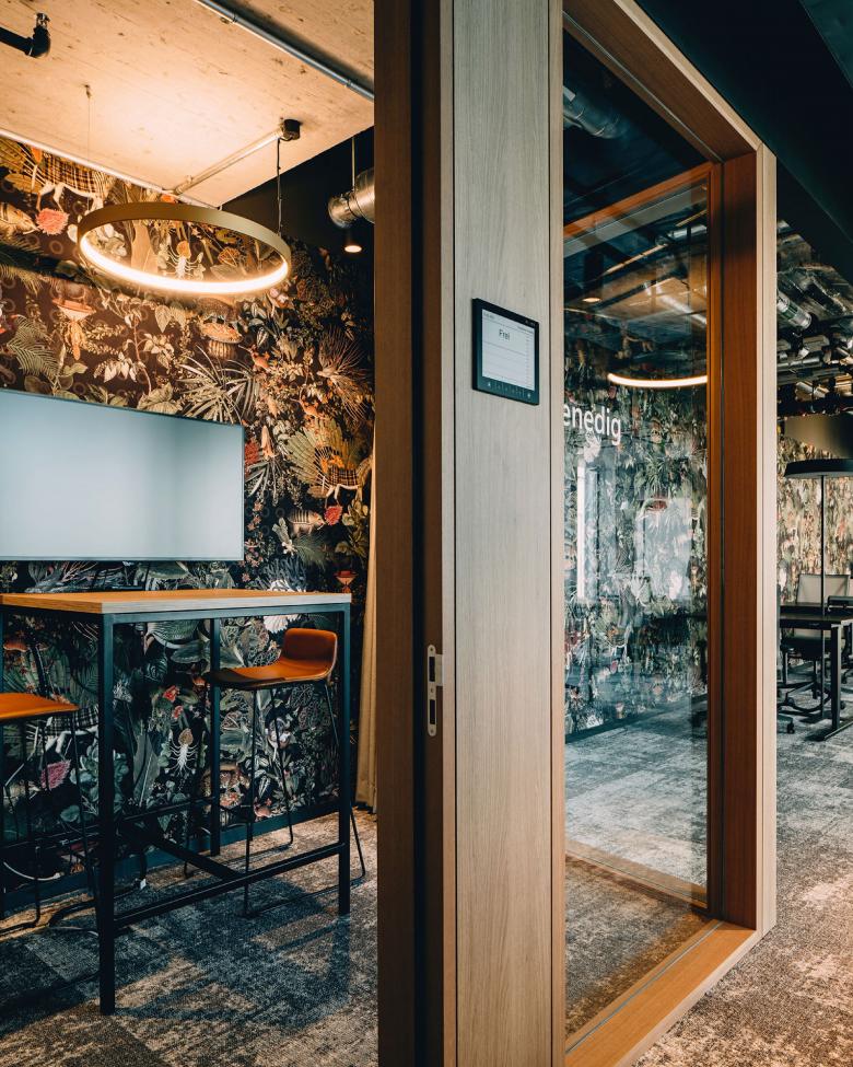 Das kollaborative Arbeiten ist für isolutions ein wichtiger Bestandteil des Arbeitsalltags. Unkonventionelle Besprechungsmöglichkeiten unterstützen unterschiedliche und individuelle Arbeitsformen und schaffen Raum für Inspiration. Für isolutions ist die digitale Welt unabdingbar; so können in den geschlossenen Besprechungsräumen auch Online-Meetings gehalten werden.