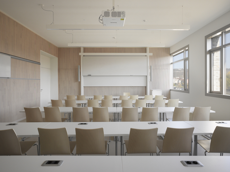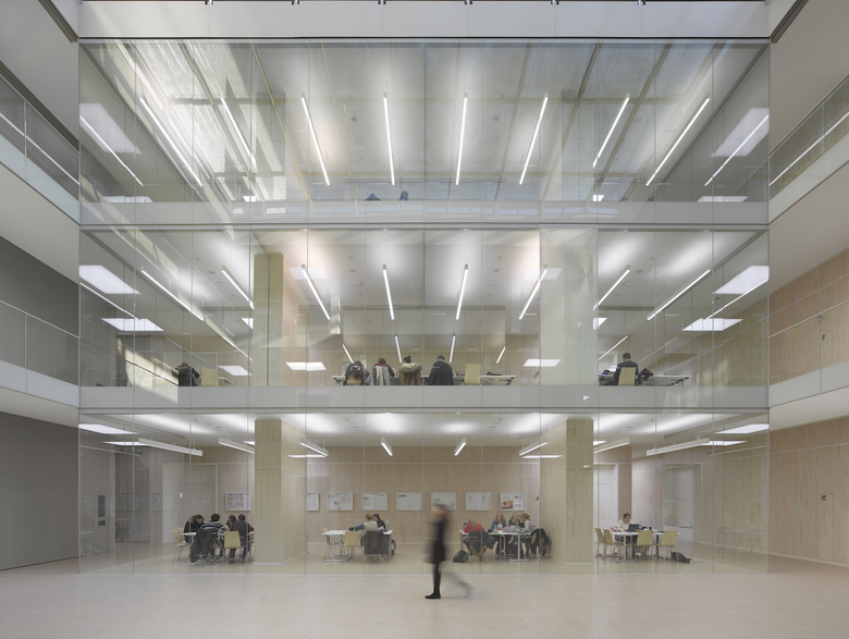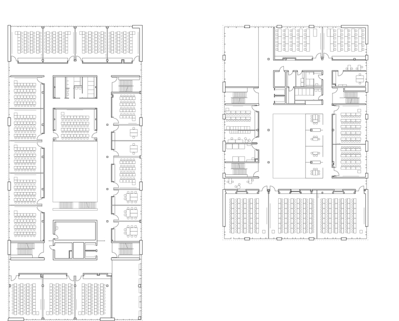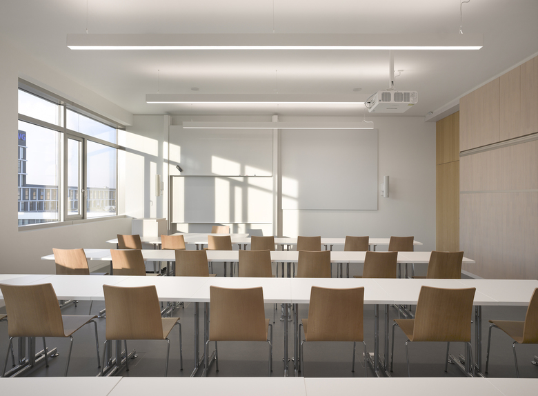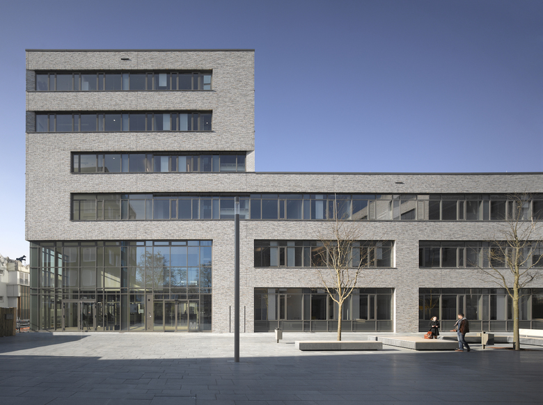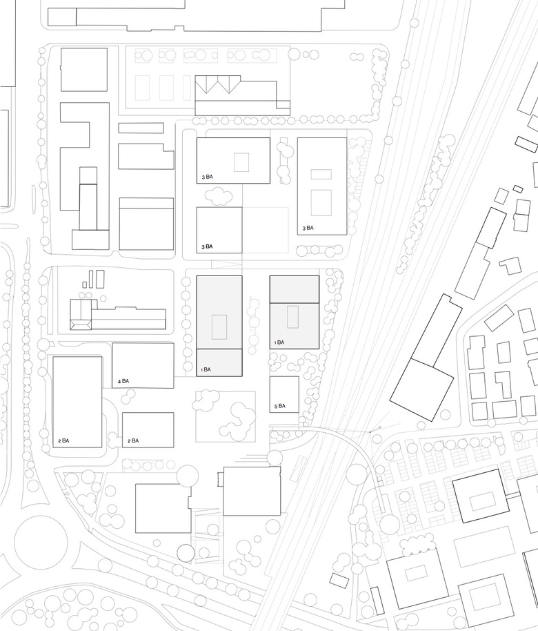 Aufbauend auf dem städtebaulichen Gesamtkonzept für den Bildungscampus III mit zwei großzügigen Freiräumen für zwei unterschiedliche Hochschulen errichtet die Dieter Schwarz Stiftung im 1. BA zwei Gebäude für die DHBW und die Hochschule Heilbronn. Beide Gebäude erhalten ein dreigeschossiges Atrium, um die Seminarräume angeordnet sind, sowie dreigeschossige Aufbauten mit den Räumen der Verwaltung der Fachbereiche. Dabei werden beide Gebäude bei aller grundsätzlicher Verwandtschaft im Detail und in der Farbigkeit differenziert ausgebildet.