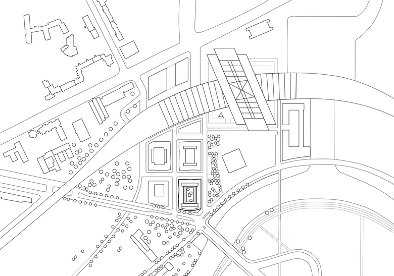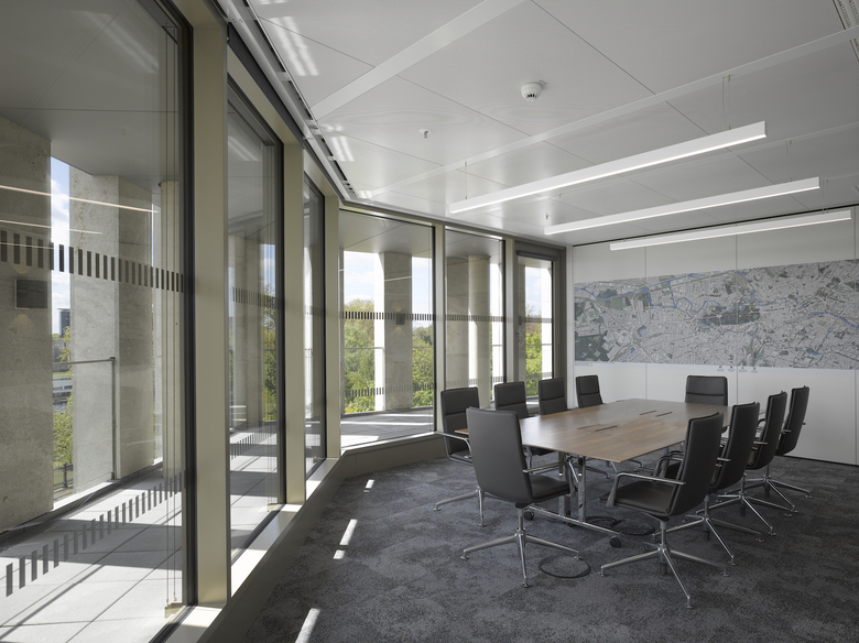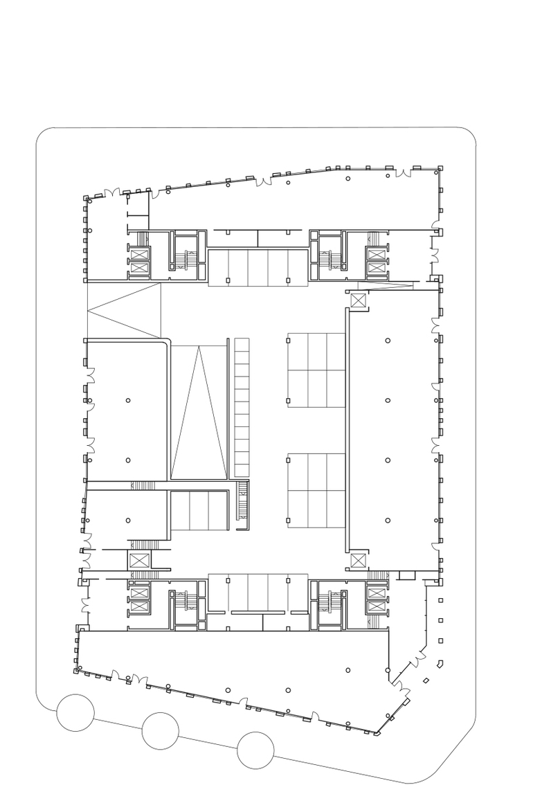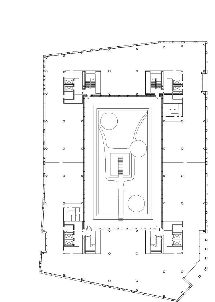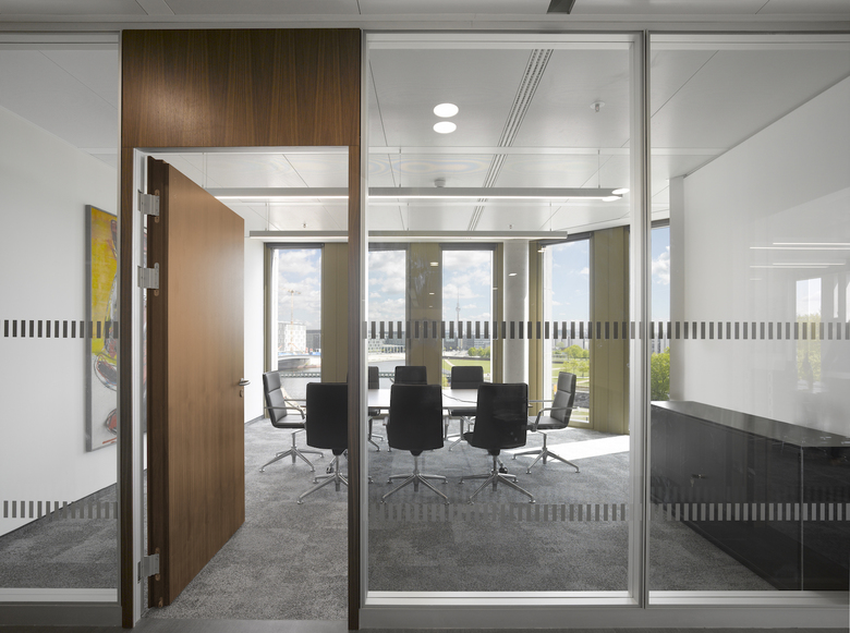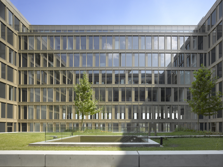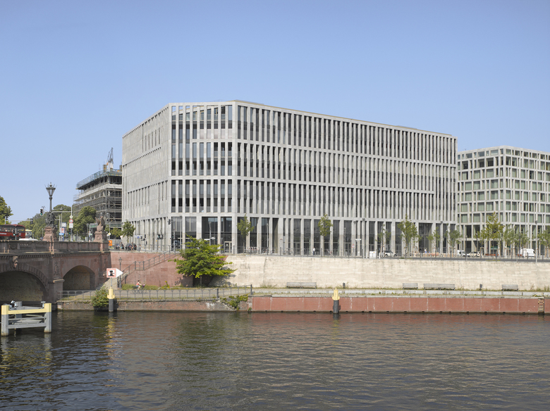 Das Bürogebäude in unmittelbarer Nähe zu Hauptbahnhof und Regierungsviertel bildet einen der vier Stadtbausteine des Lehrter Stadtquartiers. Fassadenflächen aus hellem Naturstein im Wechsel mit dahinter zurücktretenden Glasflächen definieren die äußere Schale, während sich die Gebäudeinnenseiten mit vollflächigen Glasfassaden zum begrünten Innenhof öffnen. Um die Höhe des Gebäudes zu gliedern, werden über die Fensterformate formal je zwei Geschosse zusammengefasst, die mittels leichter Geschossversprünge in Dialog mit den anderen Stadtbausteinen mit gleichen Gestaltungsregeln treten.
