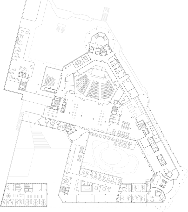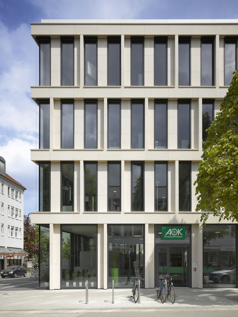 Die Kreissparkasse ordnet ihr großflächiges Areal mit Bebauung aus den 70er- bis 90er-Jahren neu. Zuerst entstehen die neuen Kundenbereiche an der Bahnhofsstraße, im zweiten Bauabschnitt werden die Bestandsgebäude einschließlich Hochhaus und Veranstaltungsforum neu strukturiert. Der Erweiterungsbau führt die Blockrandbebauung fort; seine gegliederte und profilierte Fassade steht im Kontrast zur glatten Haut des Hochhauses. Eine großzügige verglaste Halle bildet den Übergang zum Bestand. Die Verknüpfung mit der Stadt wird durch eine neu gestaltete öffentliche Durchwegung gestärkt.
