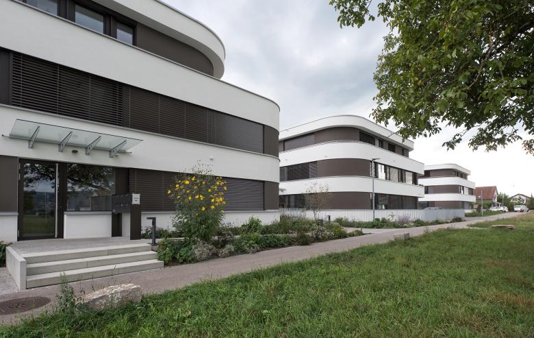 Am nördlichen Rand der Gemeinde Kaisten wurde die Überbauung «Triangolo» bestehend aus drei Mehrfamilienhäusern mit insgesamt 21 Eigentumswohnungen realisiert. Die Häuser wurden in grosszügigem Abstand auf einer Linie zueinander angeordnet. Sie fügen sich so unaufgeregt in das bestehende Einfamilienhaus-Quartier, setzen mit ihren geschwungenen Formen aber auch neue, faszinierende Akzente. Die Schwünge lassen die Baukörper leicht und elegant wirken, obschon diese ein stattliches Volumen haben. Sie umfassen auf drei Etagen jeweils sieben Wohnungen.