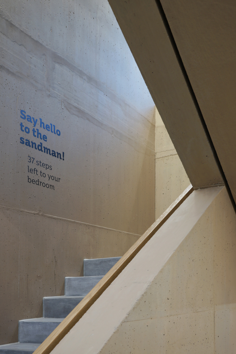 Auf dem massiven Sockelgeschoss aus Sichtbeton,