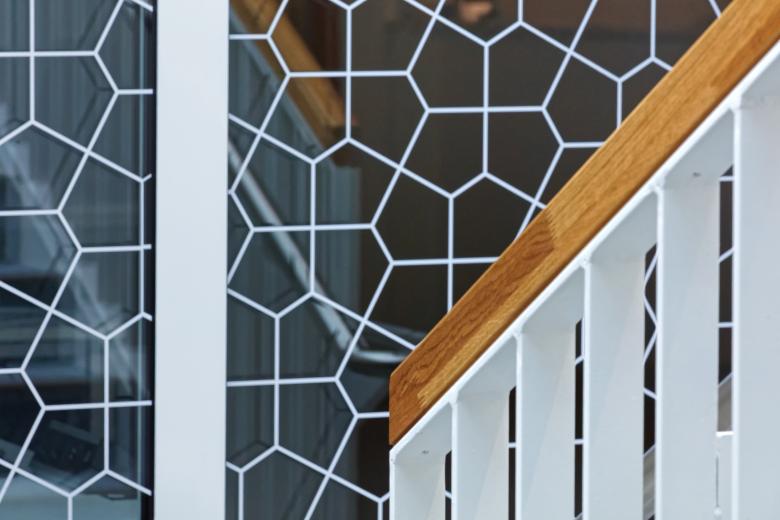 Über den Haupteingang gelangt man in das Foyer des Gebäudes, das mit dem lichtdurchfluteten Atrium einen zentralen Kommunikations- und Interaktionsraum bildet. Offene Arbeitsplätze mit unterschiedlichen Aufenthaltsqualitäten sind sowohl um das Atrium als auch auf den Galerien in den Obergeschossen angeordnet. Die zentralen Hörsäle, Seminar- und Multifunktionsräume werden ebenfalls von dort erschlossen. Das Herzstück, die Bibliothek, die sich über zwei Geschosse erstreckt, wird durch ein großzügiges Glasdach mit Licht durchflutet.