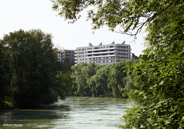 The urban development model "Waterfront Erdberger Lände" has been the guiding concept in creating a visible water’s edge as well as a connection of the residential district with the green areas of the Danube Canal and the Prater by a network of pathways.