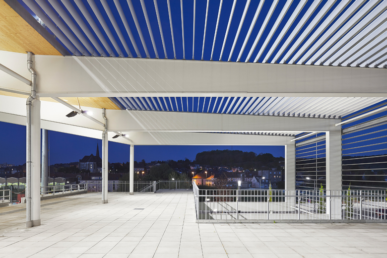 Das Projekt entstand im Rahmen eines, von der Stadt Differdange in Luxemburg ausgelobten, PPP-Verfahrens für ein Tribünengebäude und ein Parkhaus im Sportzentrum Parc des Sports. Konzept der Gebäude ist der Versuch, dem Thema Bewegung und Freizeit gerecht zu werden und sich spielerisch in den städtebaulichen Kontext zu integrieren.