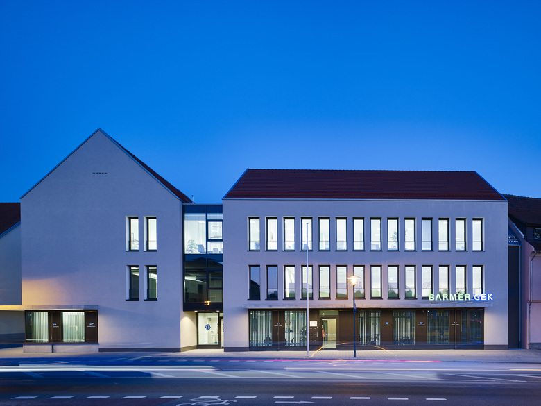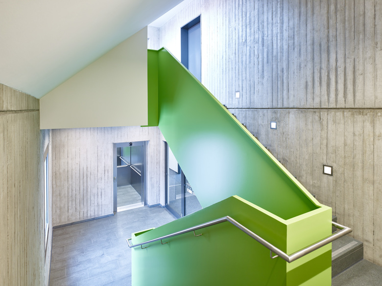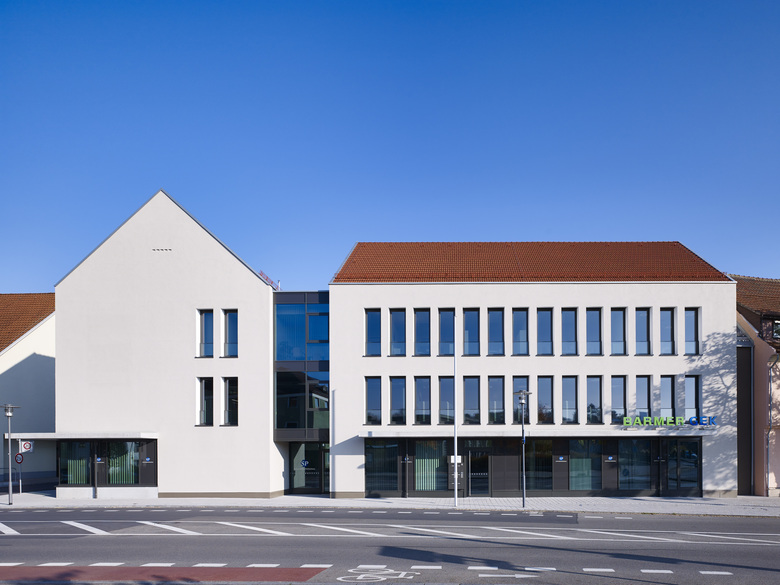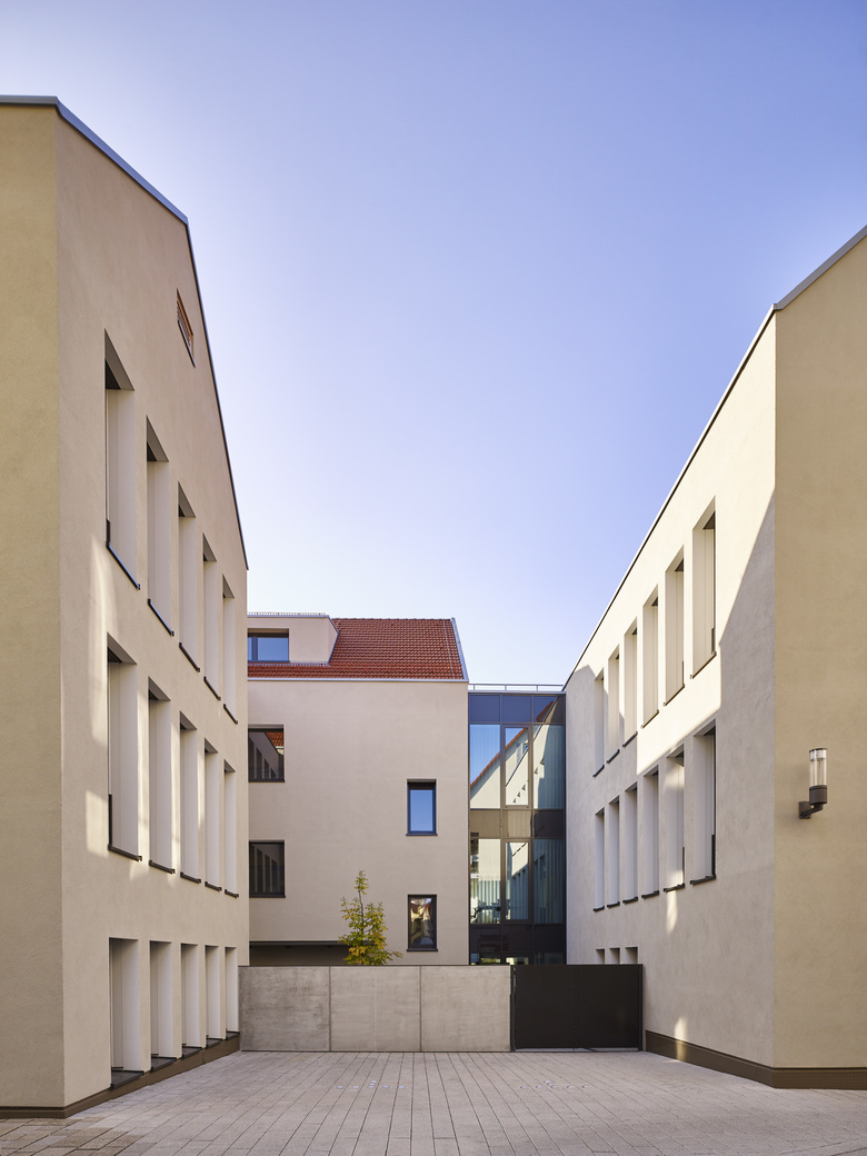 Im Auftrag des Eigenbetriebs „Stadtbau Nürtingen“ ist ein neues Büro- und Geschäftsgebäude mit Seminar- und Prüfungsräumen sowie Dienstleistungen errichtet worden. Das Gebäude fügt sich in die Stadtsilhouette der Mühlstraße ein und reagiert konzeptionell auf die städtebaulich spezifische Körnung des Stadtzentrums von Nürtingen. Es ist winkelförmig gegliedert und nimmt die Fluchten an der Mühl- und Heiligenkreuzstraße auf. Der Baukörper, welcher an der Brandwand der Gebäude Neckarsteige anschließt, definiert den Innenhof des Neubaus hin zur südlichen Bebauung. Die Dachformen übernehmen das Motiv der teilweise giebel- und traufständigen Altbauten an der Mühlstraße und gliedern das Gebäude in seiner Proportion im Stadtgefüge.