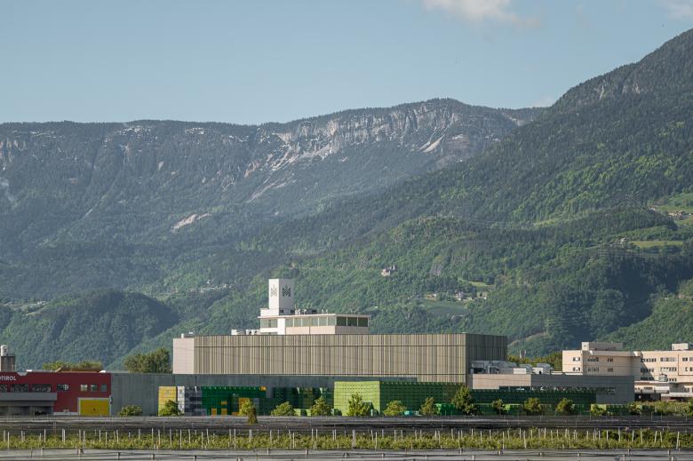 Design der Fassade des Hochregallagers der Meraner Mühle
