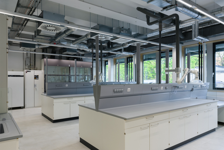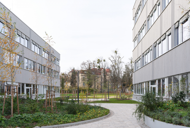 Wissenschaft und Wirtschaft begegnen sich auf dem Life-Science-Campus FUBIC in Berlin-Lichterfelde. Hier plant BFA 7.200 Quadratmeter Labor-, Arbeits- und Kommunikationsflächen: das FUHUB. Labore und Büros werden im 4-geschossigen Nordflügel untergebracht, im Südflügel sind auf 3 Etagen reine Büroflächen geplant. Vermittelnd dazwischen beherbergt eine zweigeschossige Halle den Empfangs- und Kommunikationsbereich. Begegnen können sich die Nutzer*innen auch auf der intensiv begrünten Dachterrasse. Übrige Dachflächen werden begrünt und mit Photovoltaikanlagen bestückt. Die Photovoltaik erzeugt den Großteil des benötigten Betriebsstroms selbst, die gesamte Beheizung wird über Wärmepumpen gewährleistet. Eine Zisterne sammelt das anfallende Regenwasser, das zur Bewässerung der Grünanlagen genutzt wird. Der CO2 -sparende Holzhybrid-Bau strebt eine Zertifizierung nach DGNB in Platin an.